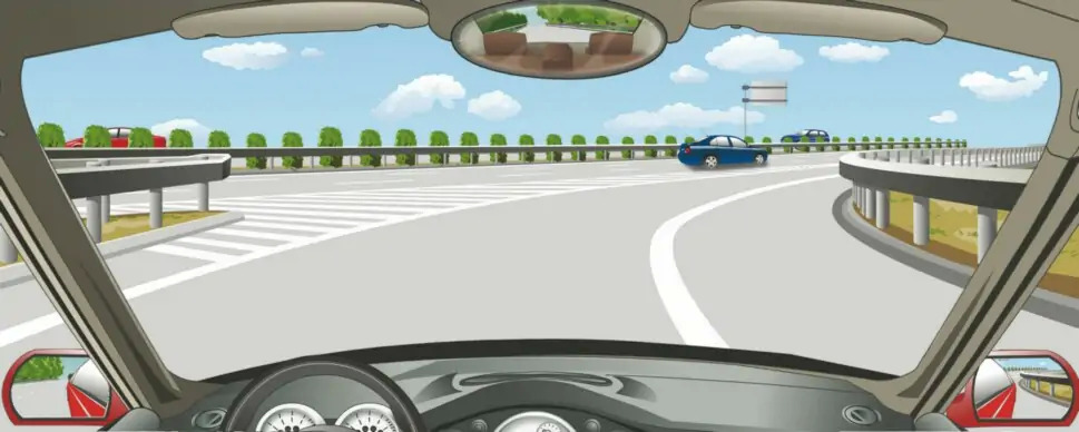 解析:Когда автомобиль въезжает на шоссе с рампы, он должен включить светофор левого поворота и войти в полосу, не препятствуя нормальному движению автомобиля, который уже находится на шоссе.