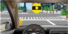 解析:黄灯亮时,已越过停止线的车辆可以继续通行,其它情况需要停车等待。图中黄灯亮时车辆前轮并未越过停车线,因此要停止等待,不可通过。