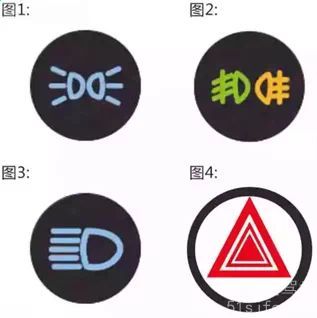 解析:图1是示宽指示灯;图2是雾灯指示灯;图3是远光指示灯;图4是危险报警闪光灯按钮,发生意外时应该打开危险报警闪光灯。