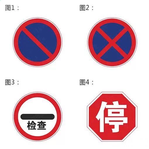 解析:图1:禁止长时停车。图2:禁止停车图3:停车检查图4:停车让行以上标志都是要硬性记忆的。记住就好。
