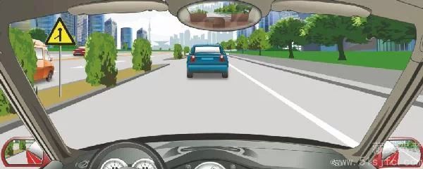 解析:합류 주의: 차량 운전자에게 전방에 차량이 합류하는 것을 주의하라고 경고한다.노란색은 경고 표시!