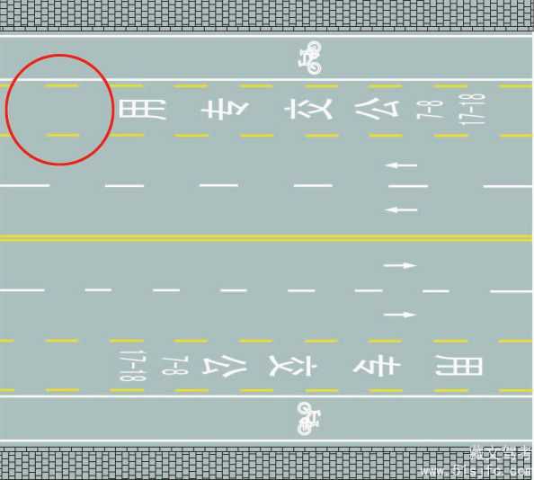 解析:黄色虚线中的车道里有写字,黄色虚线是想突出引动驾驶员注意的,因此本题是公交专用车道。