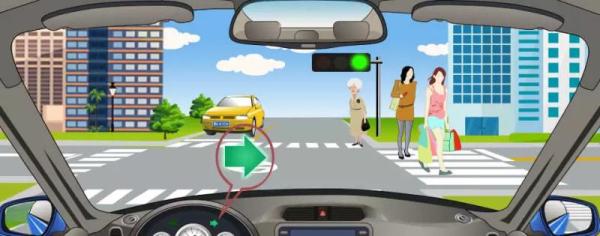 解析:如图所示,图中人行横道有行人,等待两个行人都通过路口再右转弯。
