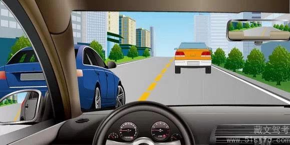 (判断题)41、如图所示,驾驶机动车遇左侧车道有车辆正在超车时,可以迅速变道,伺机反超。