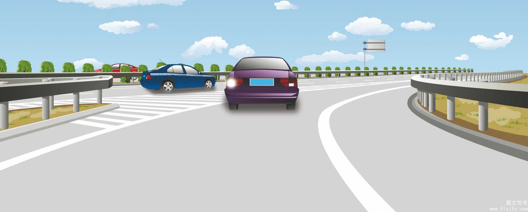 19、如图所示,当您超越右侧车辆时,应该尽快超越,减少并行时间。