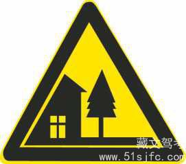 解析:村庄:用以提醒车辆驾驶人小心驾驶。设在紧靠村庄、集镇且视线不良的路段以前适当位置。