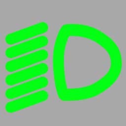 解析:绿色光线在左边,有纵向线的是前雾灯,没有纵向线的是近光灯。图中没有纵向线,是近光灯。