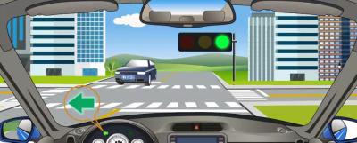 解析:图中我们的车是左转,不能妨碍被放行的直行车辆通行。