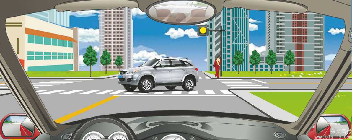 解析:这个路口只有一个信号灯,也就说只有黄灯,而且一直在闪烁,表示警示,提醒过往车辆注意瞭望,确认安全后通过。