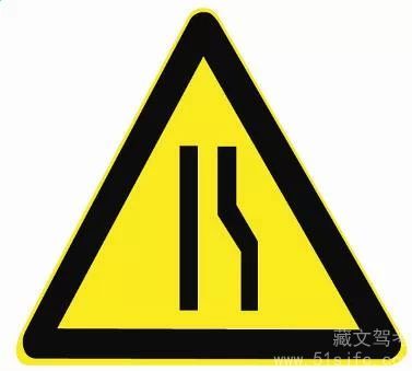 解析:左侧变窄,用以警告车辆驾驶人注意前方车行道或路面狭窄情况,遇有来车应减速避让。