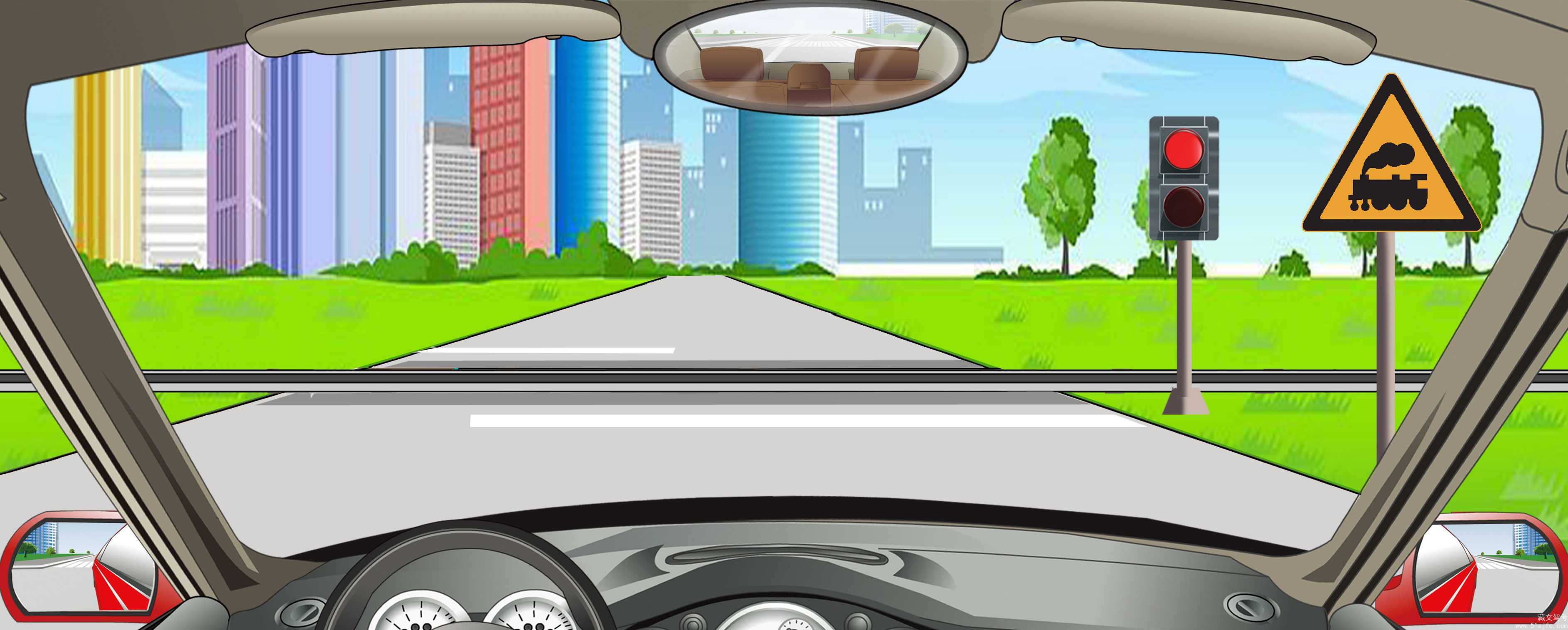 15、如图所示,驾驶机动车行驶至铁路道口时,以下做法正确的是什么?