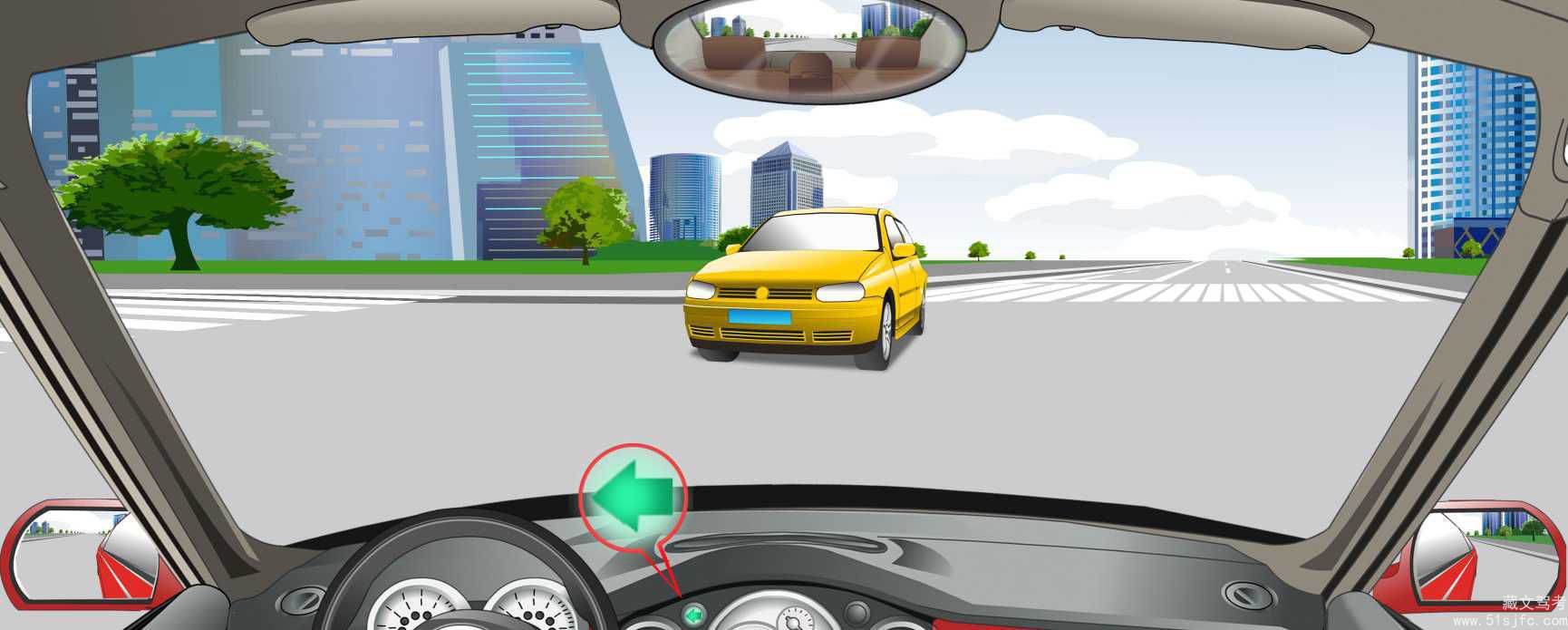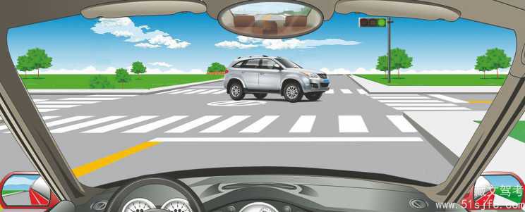 解析:对面左转车辆已到路口中间,本车先让对面左转弯车转弯,再右转。