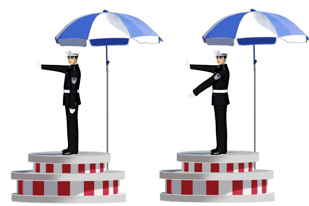 解析:交警左手摆动就是左转弯,右手摆动就是右转弯。