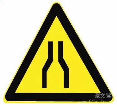 解析:警告标志两侧变窄。用以警告车辆驾驶人注意前方车行道或路面狭窄情况,遇有来车应予减速避让。设在双车道路面宽度缩减为6m以下的路段起点前方。