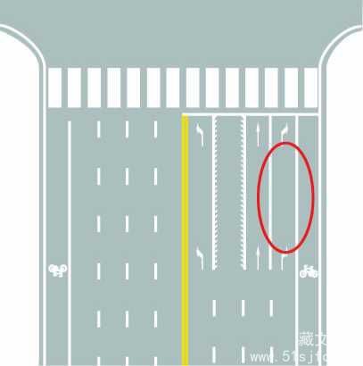 解析:将车流诱导到应行驶的路线的设施的总称。导向车道:大城市主要平交路口两端,引导车辆分道行驶的车道,其分界线用白色单实线,表明进入该车道的车辆不得变更车道或压线行驶
