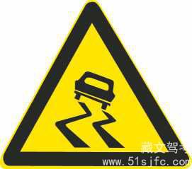 解析:易滑路段:此标志设在路面的摩擦系数不能满足相应行驶速度下要求紧急刹车距离的路段前适当位置。行驶至此路段必须减速慢行。