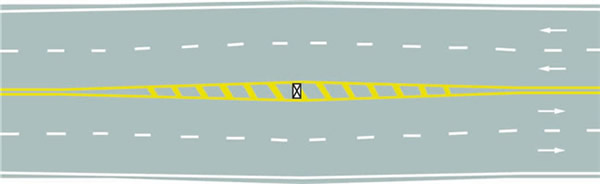解析:双黄线就是警告注意越界,“打叉的物体”就是不可移动障碍物。因此选 接近障碍物标线。