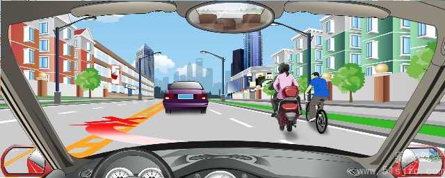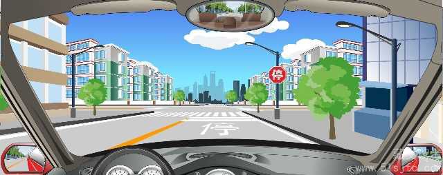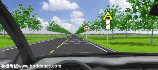 解析:由动画可知,前方是人行横道,遇到这种情况应当一看二慢三通过,因此本题选D。
