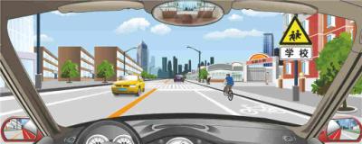 解析:由图可知,前方道路是学校,要注意儿童,因此通过这样的道路时,要减速慢行,同时注意周围情况,必要时停车让行。因此本题选B。